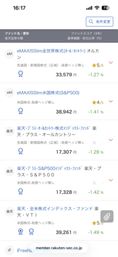 一番上にある、『eMAXIS Slim 全世界株式(オール・カントリー)』か『eMAXIS Slim米国株式(S&P500)』を選択するといいよーとGeminiが教えてくれました。
