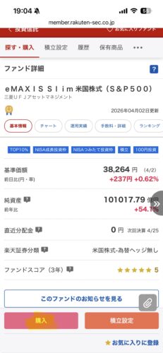 さて、冒頭でも書きました通り、NISAはじめて記念🎊として、積立とは別にS&P500をスポット購入します。